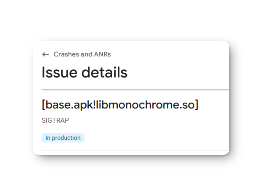 I call it the SIGTRAP error as that was literally all shown in the Google Play Console crash report. The error was a complete mystery since the message and the stack trace were not helpful at all, like some kind of alien language that no one could understand. What the heck is [base.apk!libmonochrome.so]? And what does SIGTRAP even mean?