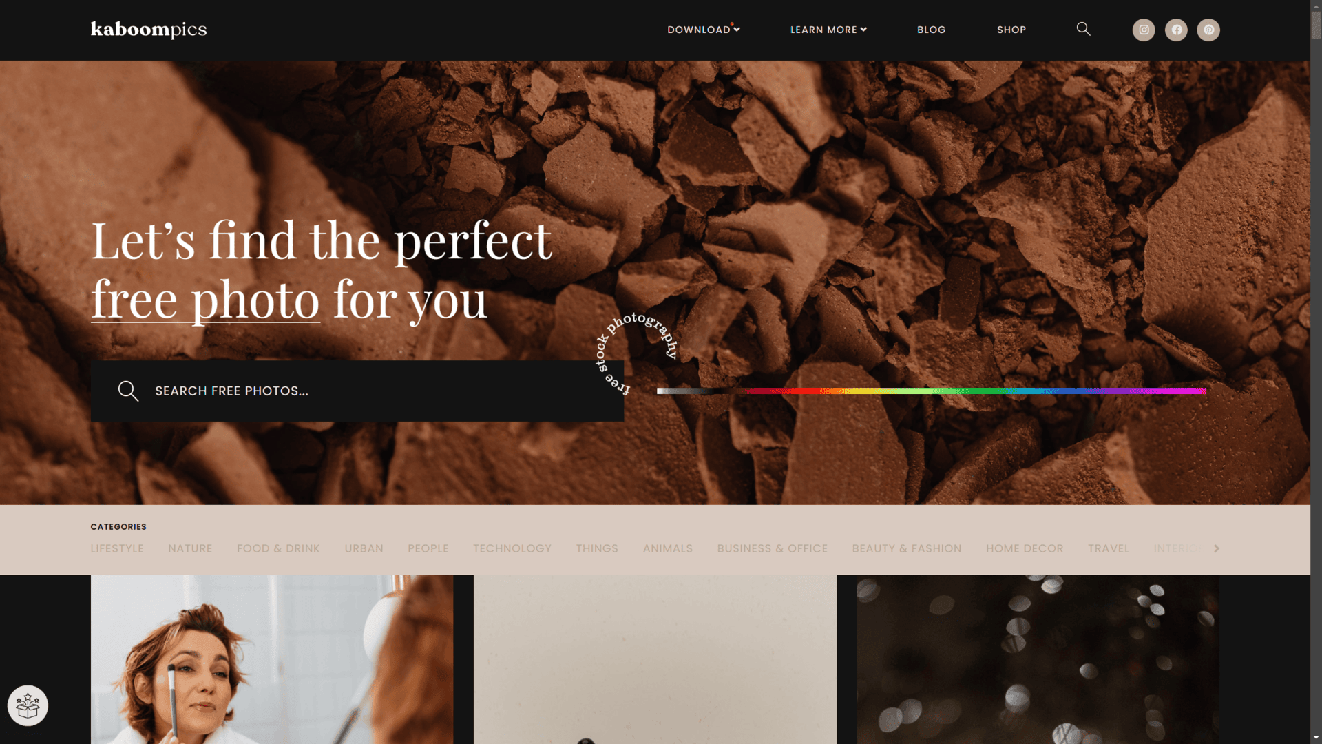 Kaboompics offers a wide range of high-quality images and includes a complementary color palette for each photo, which is helpful for design projects. Their license allows free use with no attribution required.