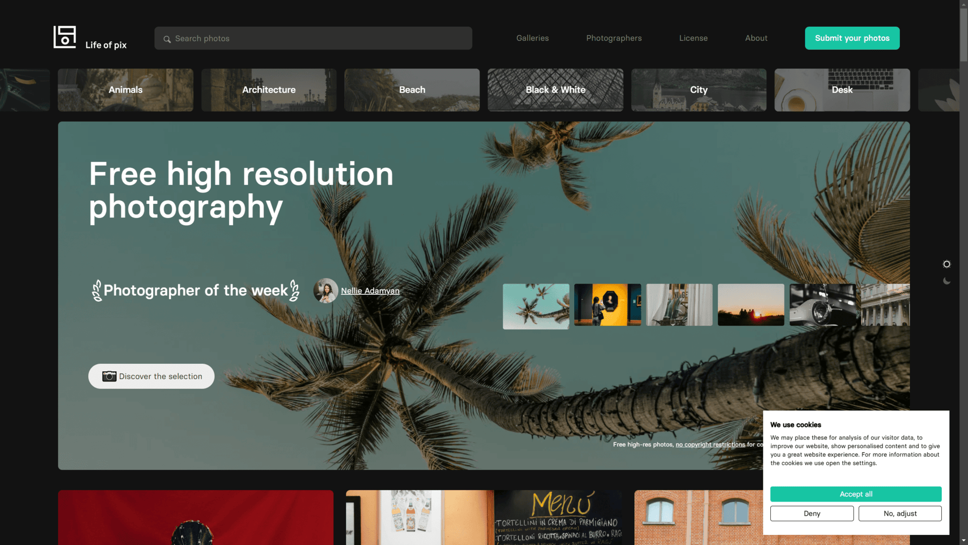 Life of Pix features stunning high-resolution photos contributed by a network of photographers. The site’s content is updated regularly, ensuring fresh options for your projects.